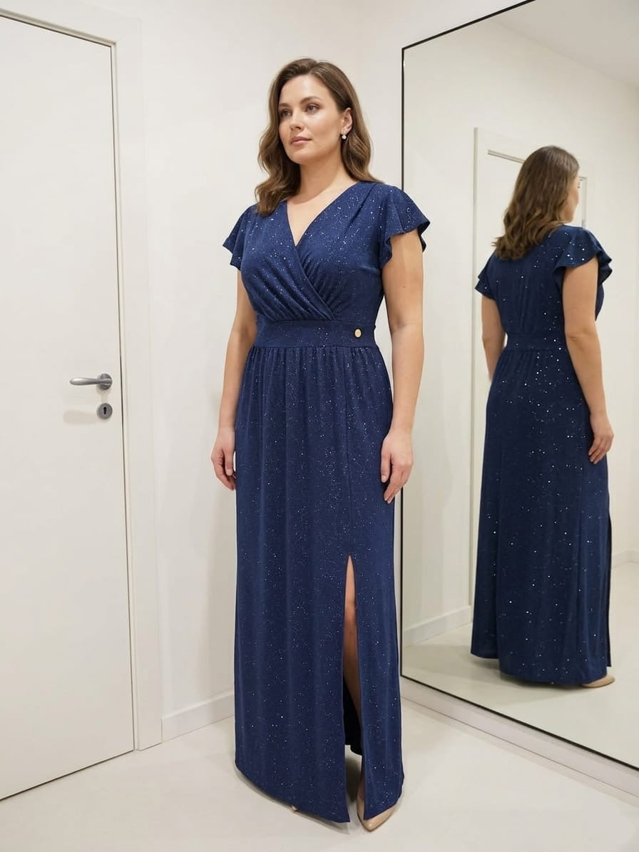 Scopri l'Abito Vera della linea Exsy Curvy, un capolavoro in blu notte brillantina che esalta la tua silhouette con eleganza. Realizzato per donne che vogliono sentirsi sicure e bellissime, questo abito è perfetto per ogni occasione speciale, regalando un tocco di glamour irresistibile. Indossalo e brillati!