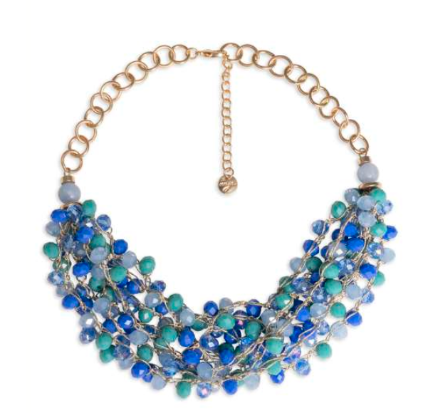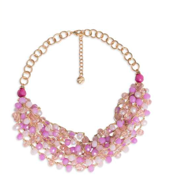 Collana girocollo a catena con microcristalli sui toni del blu e del rosa
