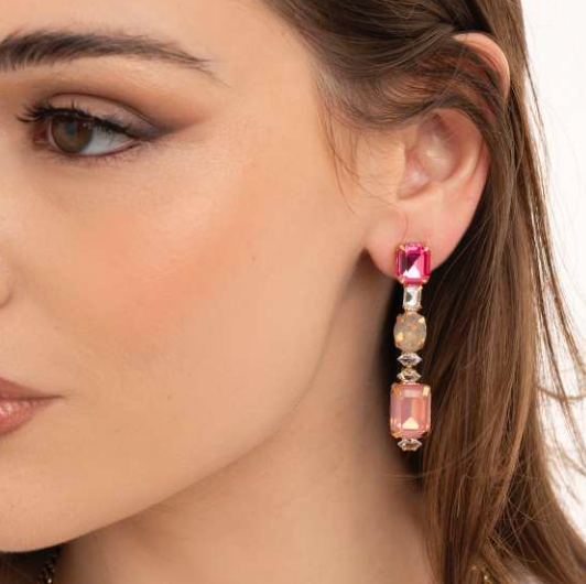 Orecchini Pendenti con Pietre in Vetro – Tono Celeste - Rosa