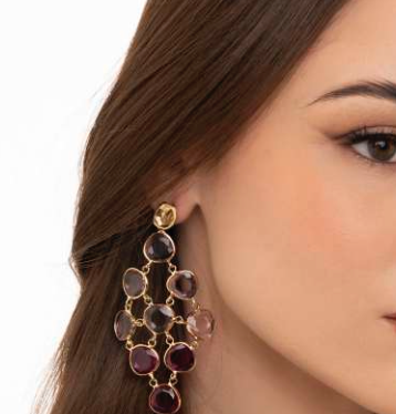 Orecchini Pendenti con Pietre Circolari in Vetro – Tono Rosa