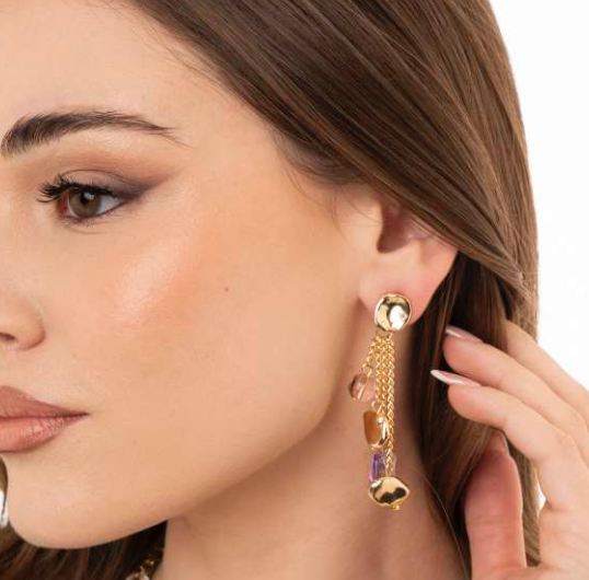 Orecchini Pendenti a Catena con Pietre in Acrilico Multi